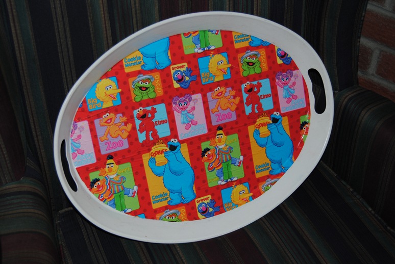 In this little table, I saw much hidden potential. I can’t remember how I came across it. I found it up in our attic. It was the perfect little project. I brought it down, and it sat in my bedroom, waiting it’s turn to be upcycled. Tonight seemed like the perfect night! While the little toddler apprentice slept, I gathered all my materials together. (Including my mess of a table cloth strewn with paint and Mod Podge of projects past.)