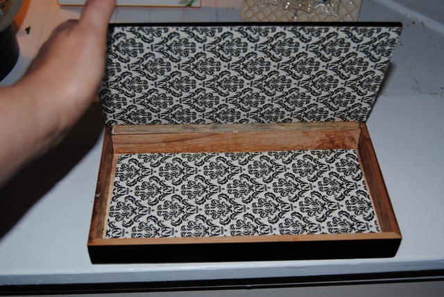 Once it was completely dry, I applied Mod Podge to the top and inside of the box. I decided to leave the exposed natural wood on the edges inside. I really love this box and as I always say “Now…. what shall I put in it?”