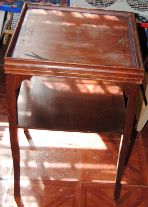 I picked up this side table at Goodwill. I loved the design qualities it had, but this piece was in poor shape. Most of the finish was worn off, and it had issues with sturdiness. Due to these shortcomings, this table was priced right at only $3.99.