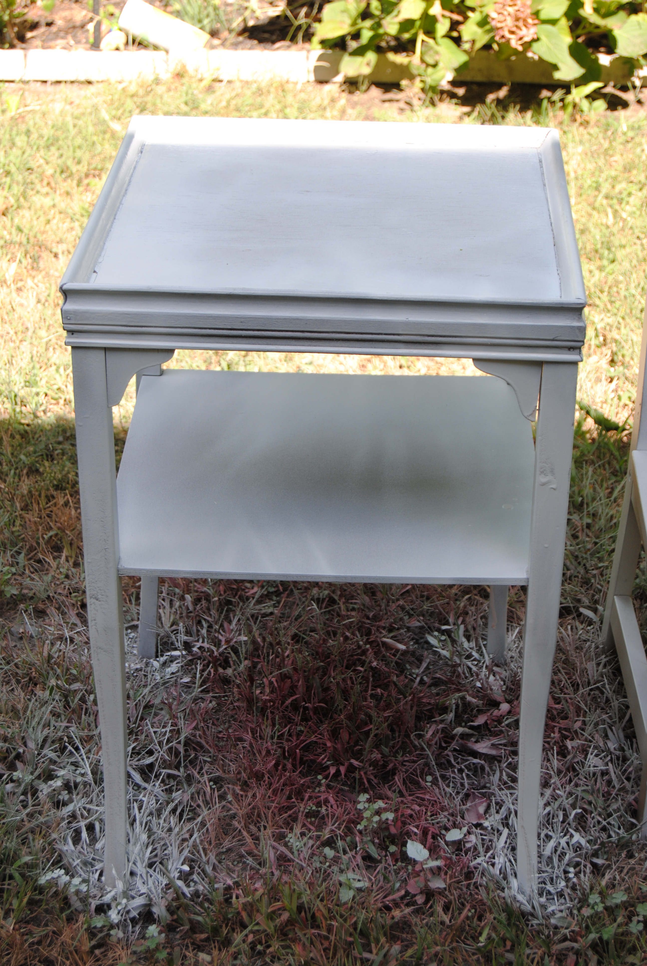 I took the table outside cleaned it, and tightened it up as best I could. I used a can of white spray primer to prepare the table for painting.