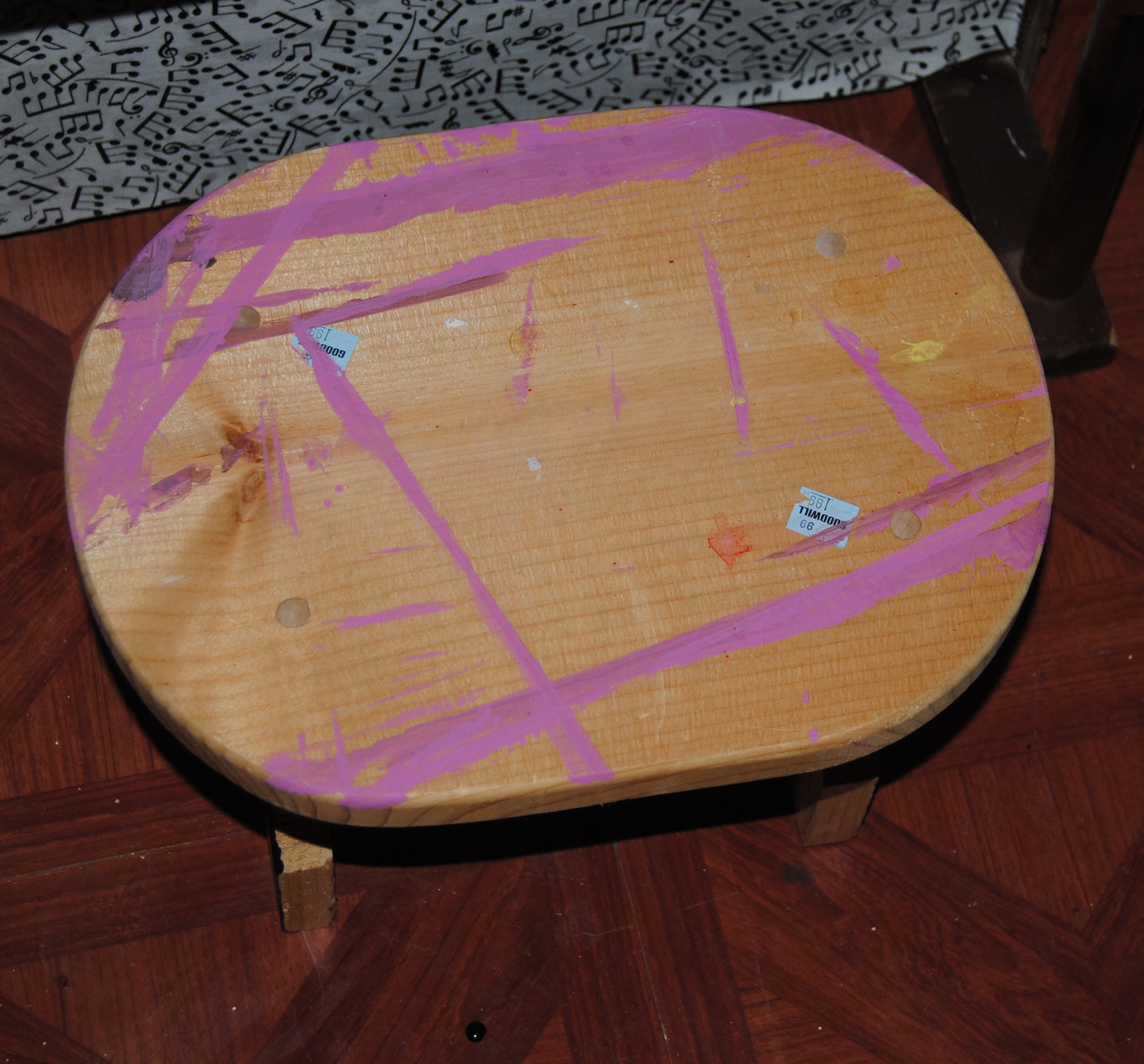 Since the piano did not come with a bench, I had a kids unfinished step stool that I thought would repurpose and stand in nicely as a piano seat.