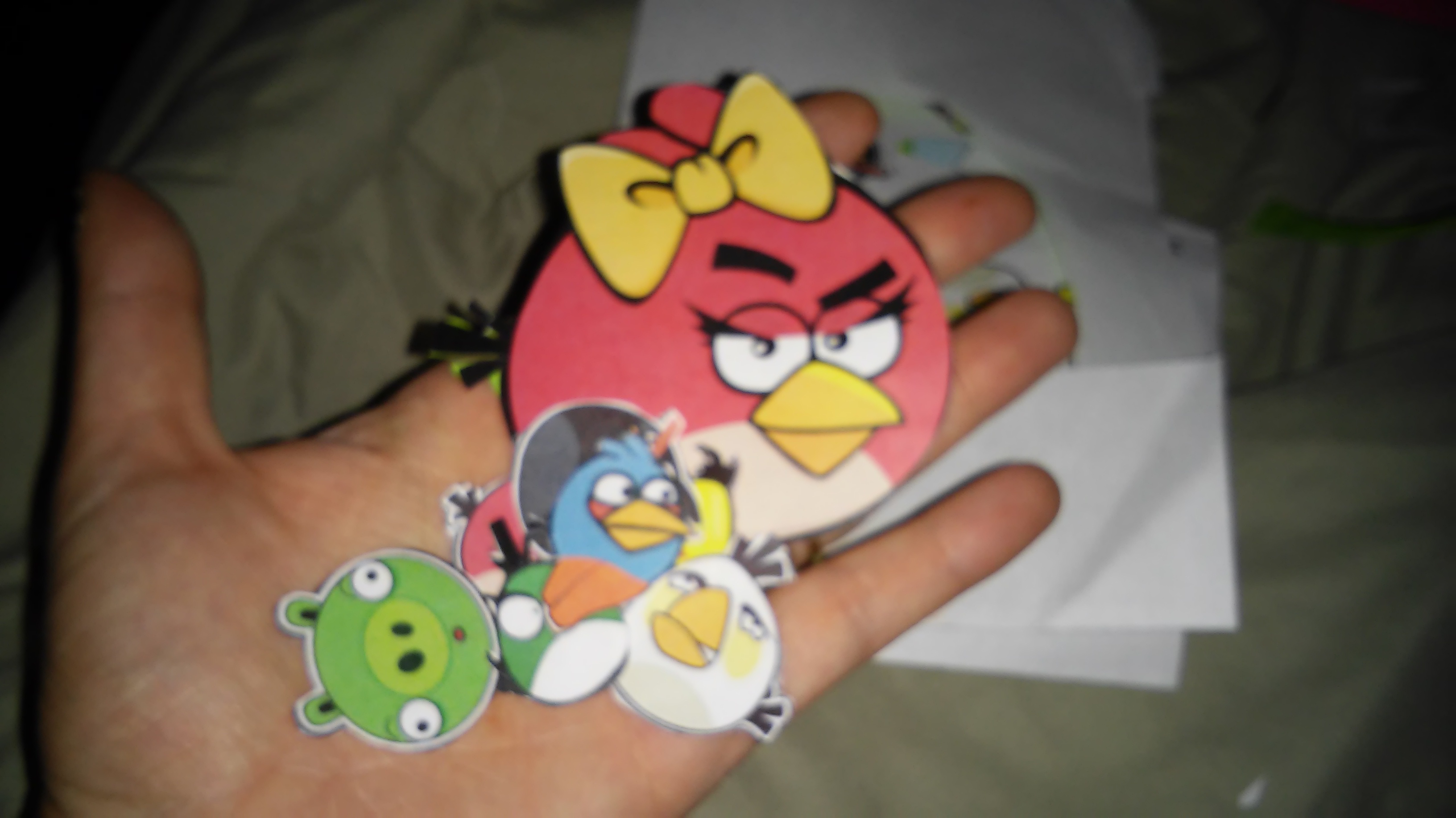 I then went online and downloaded some Angry Bird images. You can use character stickers if a printer is not available.