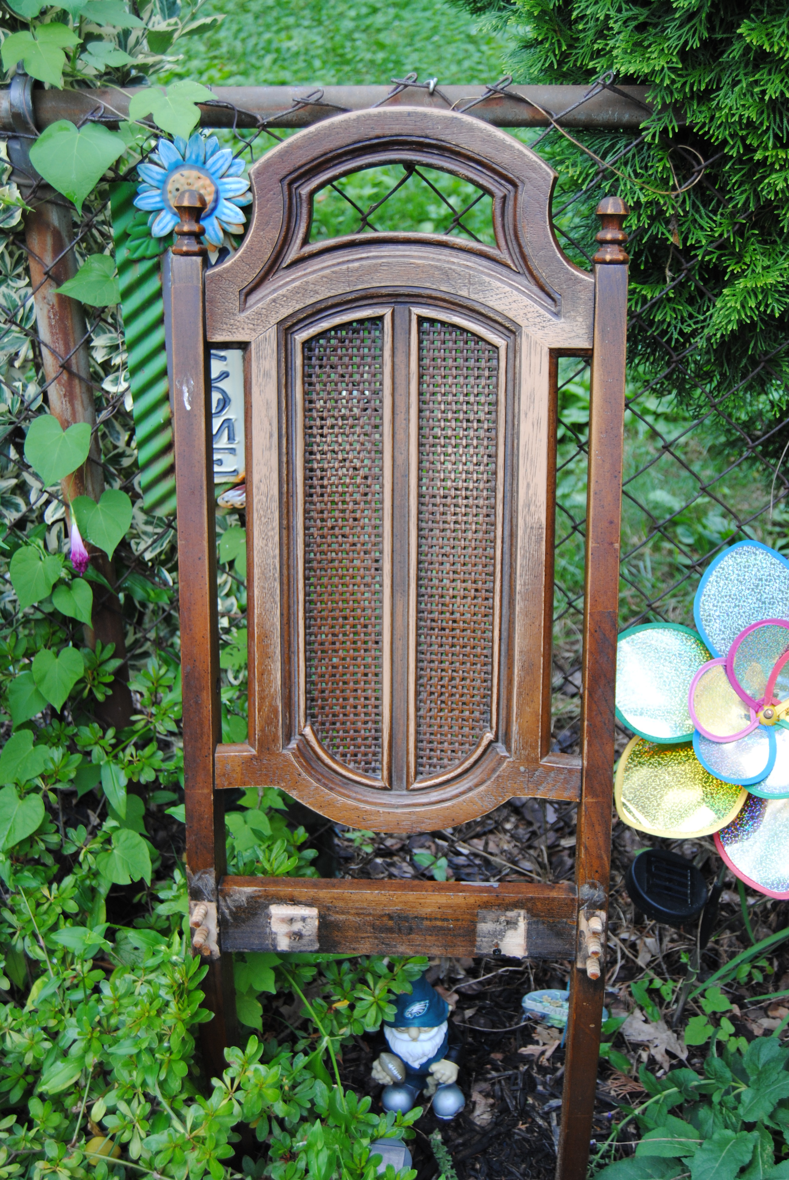 Now, I was left with the remnants of another chair, and did not want the all the parts of this chair to end up in the trash. It had a lovely seat back, and I had seen some lovely upcycling of chair backs into picture frames on Pinterest. I decided to give it a try. One great example of this can be found at All Things Thrifty.com