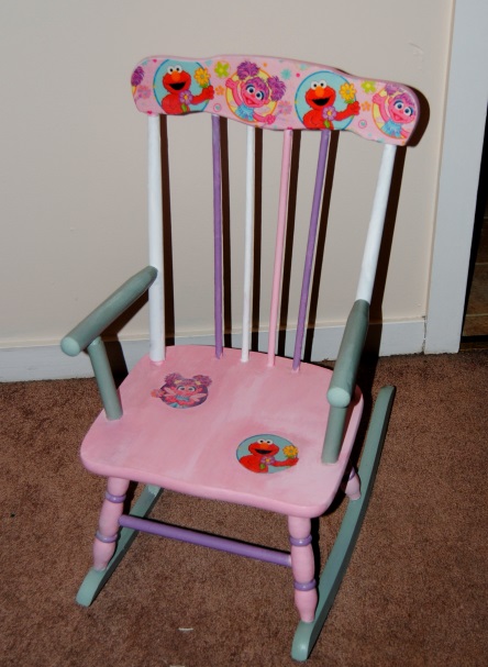 As most of my readers already know my daughter is a HUGE Sesame Street fan. Her favorite doll is her Ernie doll which she carries with her everywhere she goes and takes with her to bed at night. Her other favorites are Elmo and Cookie Monster. It just seemed like a no brainer that a Cookie Monster/Sesame Street Cookie Jar was in order. I printed out 5×7 Cookie Monster image from online, and for the sides of the jar I decided to recycle an old Sesame Street Birthday Party Decoration.