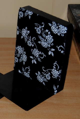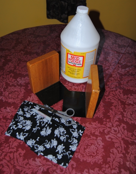 My daughter and I stopped by the craft store and I let her look through the aisle filled with different character fabrics. She seemed to like this Hello Kitty print and I happily obliged, being a Ms. Hello Kitty fan myself. When I was young the local mall had a store called Sanrio and they sold Hello Kitty and all her “friends” merchandise. It was one of my favorite stores to visit in the mall. I bought a half yard, and roughly traced the fabric to cover the table surface. Once the Mod Podge dries, any excess fabric left over around the edges and handles I trim with a box cutting knife. The glue stiffens the fabric and makes it easier to cut. I placed the fabric down on the Mod Podge soaked surface carefully smoothing out any wrinkles with my hands.